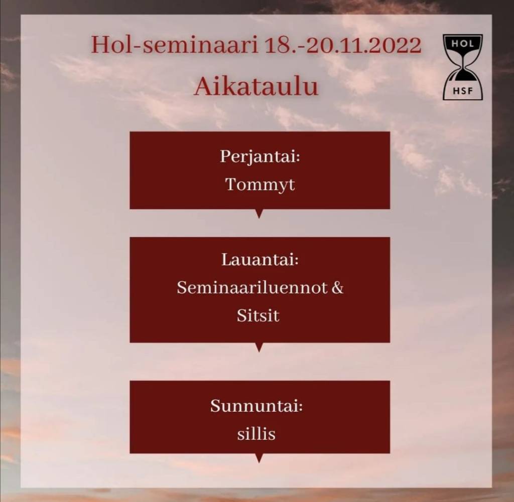Tiivistetty Hol-seminaariviikonlopun ohjelma: